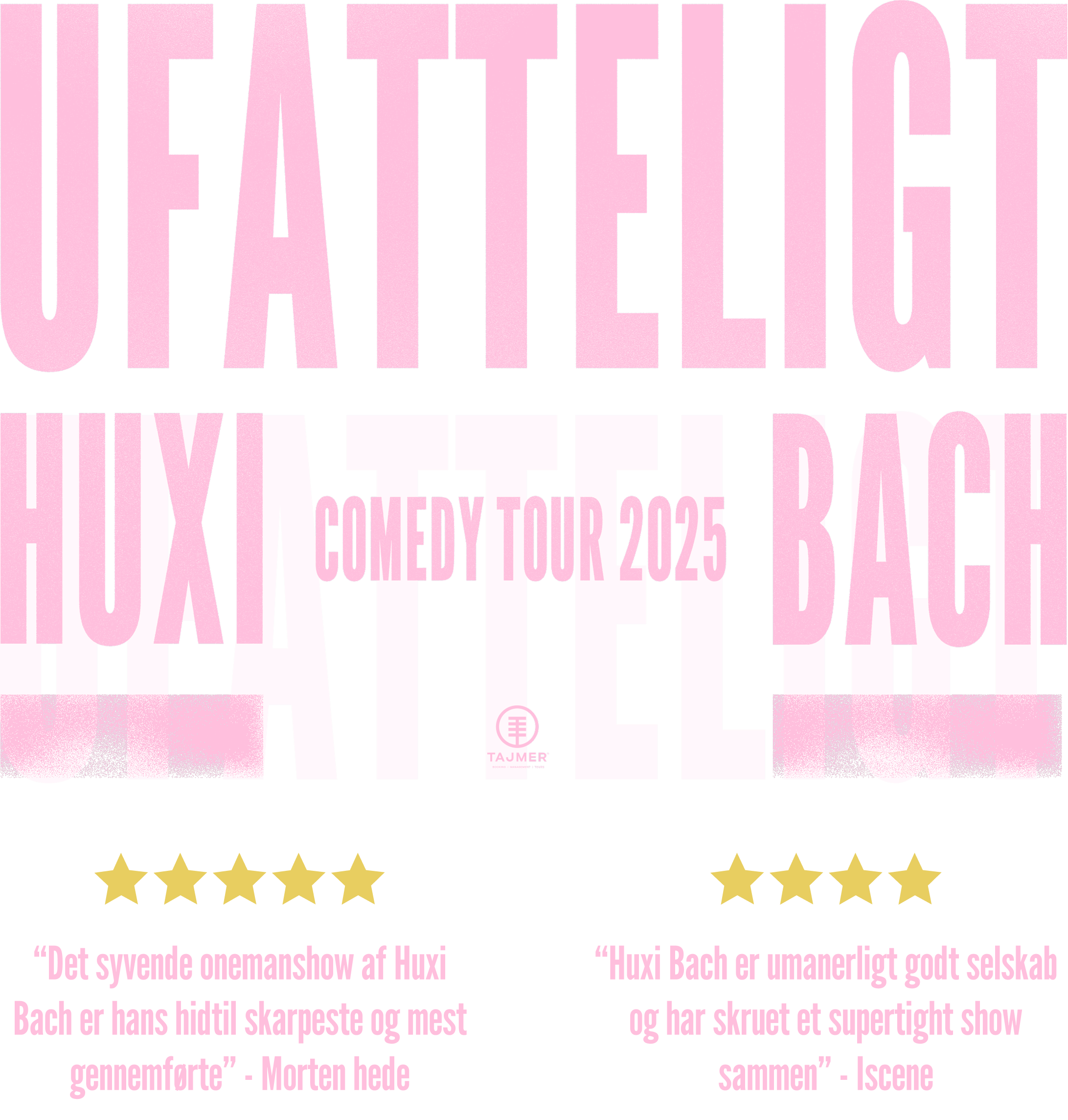 ’Ufatteligt’ er Huxi Bachs 7. onemanshow og vil som altid være en knivskarp kombination af satire, humor og samfundskritik. Med sin velkendte evne til at blande humor og viden leverer Huxi – udover sine onemanshows – den populære ugentlige podcast ’Ubegribeligt’ på DR Lyd/P1.